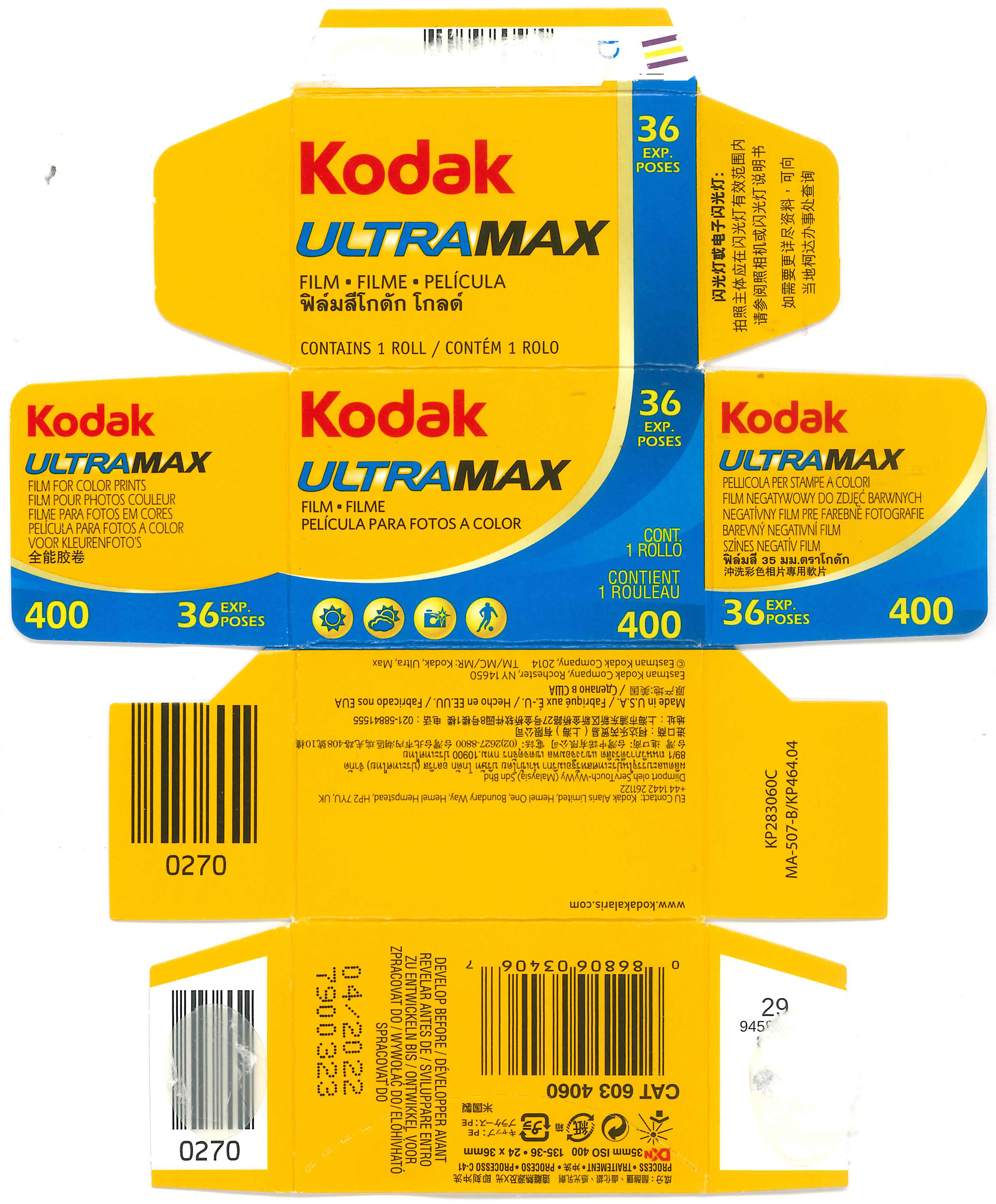Kodak Ultramax 400 is Kodak's offering for amateurs that need a faster color film. As a 400 film it is more expensive than ColorPlus 200 and Gold 200, a price increase that is unfortunately often compansated by selling 24 exposure cartridges in drug stores. As labs tend to charge a fixed price per roll processed indifferent to the number of exposures on it this is usually a bad deal, in the end the customer saves money by buying this film with 36 exposures in photo stores.